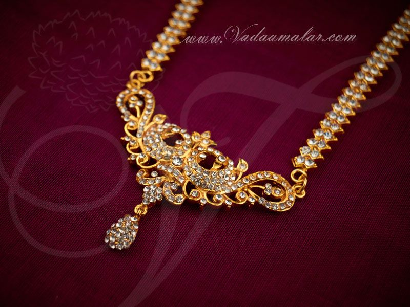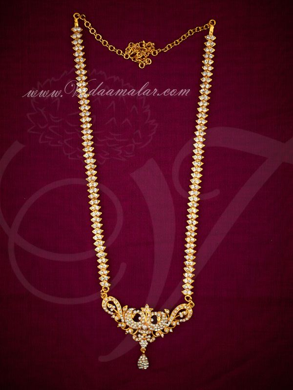 Description :Â White stones necklace set for idols and statues. Designed to adorn the chest of deity statue of God and Goddess.