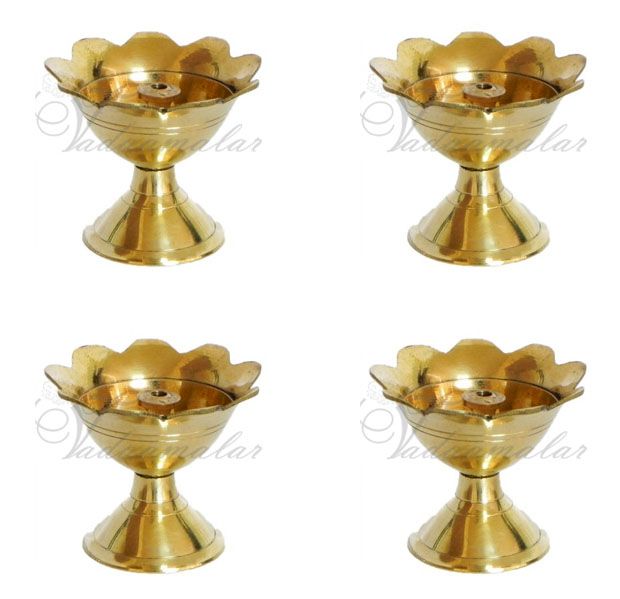 2.5 inches Swastika Jyoti Small Brass Diyas in flower modle – 4 pieces