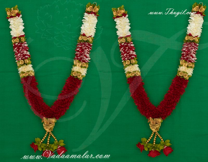 It is used during weddings and pujas. Jasmine and rose flower design garlands. Looks very real and fresh. Handmade.