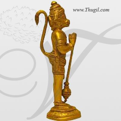 Brass statue of Lord Hanuman. Standing posture of Anjaneyar in brass. Hand carved God of strength Lord Hanuman ji. Ram bhakt shri Hanuman statue available online. Wide variety of Hindu God and Goddess.