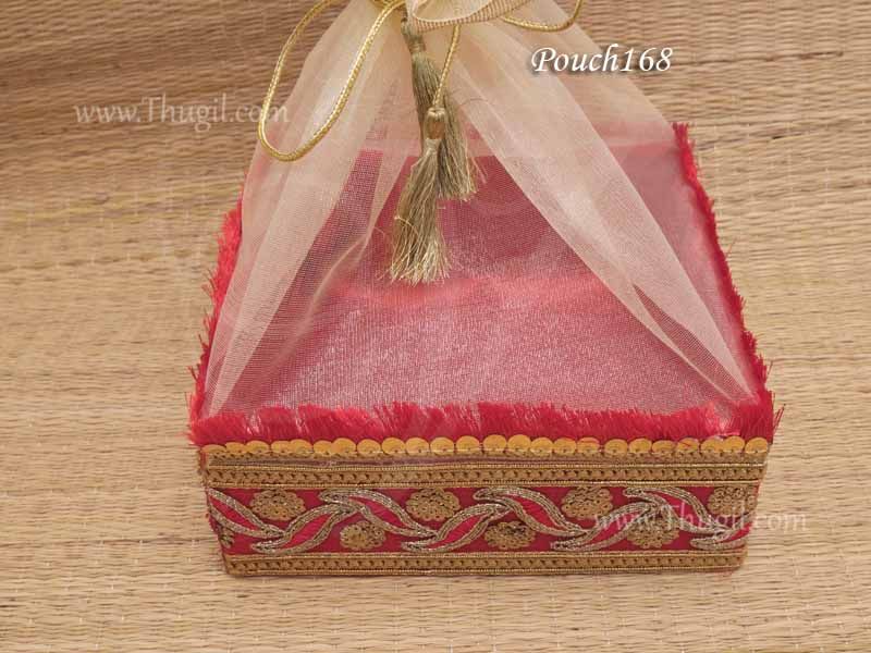 India Hand-Crafted Net Ribbon Gift Red Nylon Fruit & Vegetable Basket. Can be used as a container to gift chocolates, dry fruits, etc Ideal as a gift and personal use.