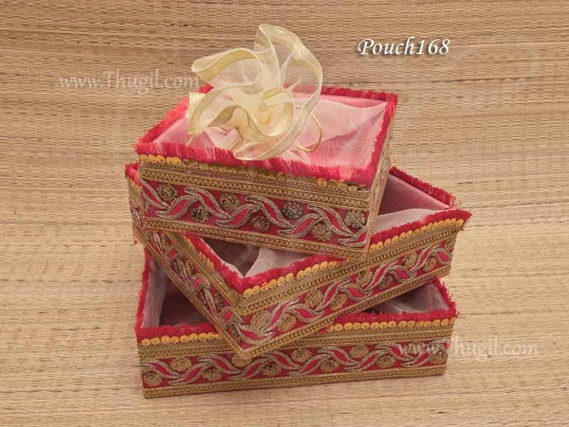 3 Pieces Display Tray Wedding Decorative Gift Basket With gold Net Cover