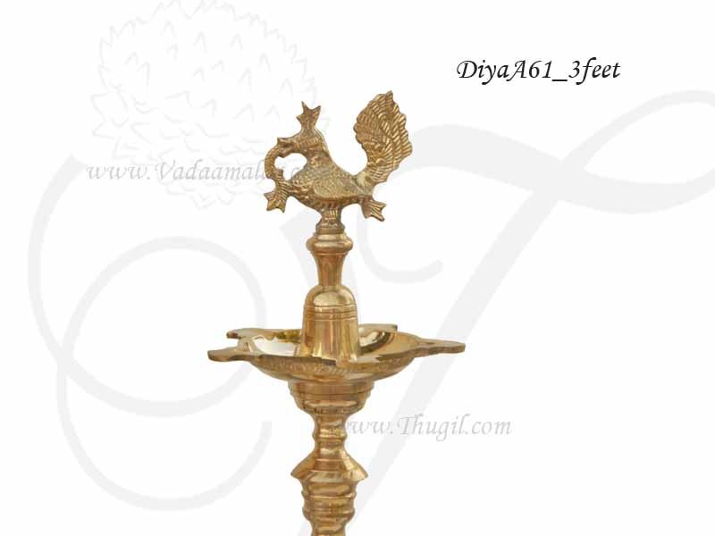36 inches / 3 feet Peacock Standing Brass Diya Vilakku Deepam Diyas