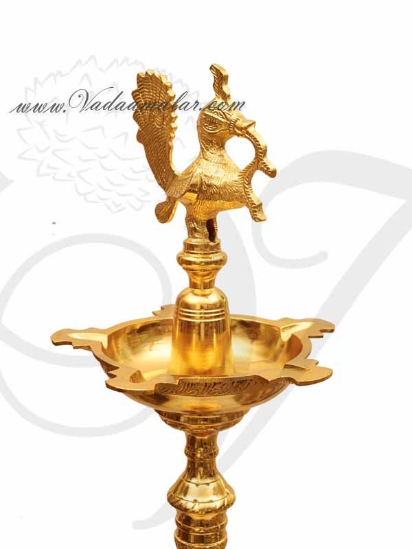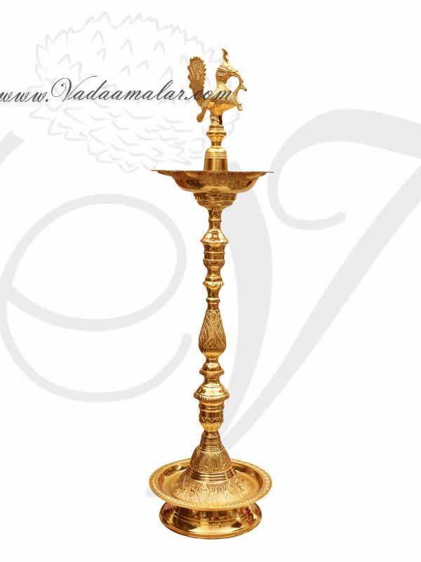 4 feet Gold Plated Peacock Standing Brass Diya Vilakku Deepam Buy now
