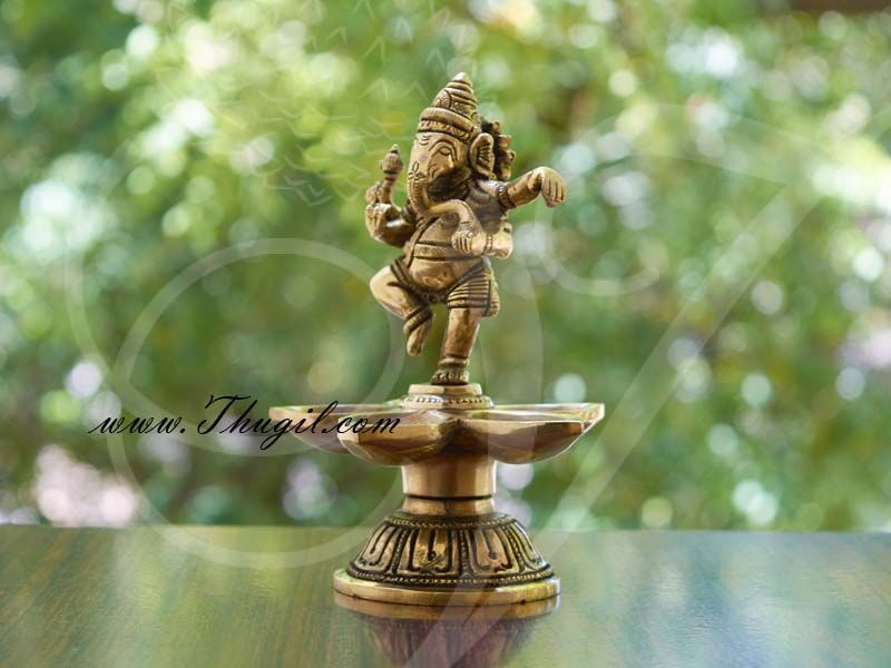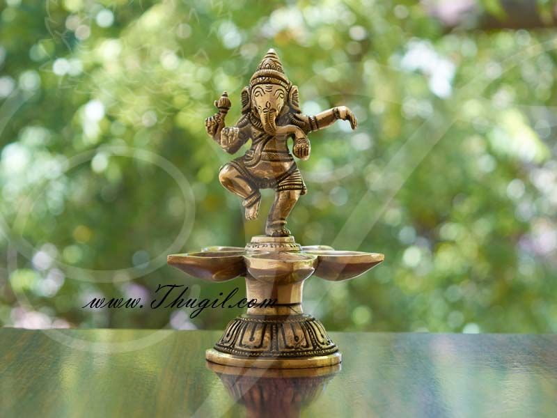 Description : Majestic Lord Ganesha dancing on diyas. Standing Ganesha diya in brass. They are hand made and looks very elegant to light-in up your festival.