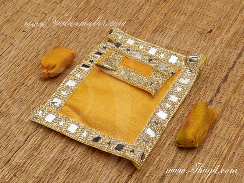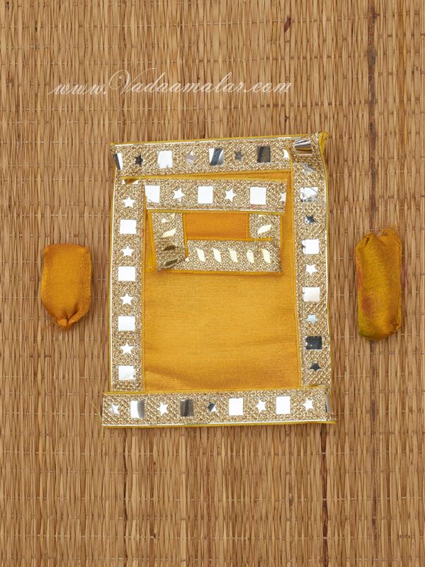 5- 9 inches Golden Decorative Aasan Cushion Bed for Hindu Idol Statues Laddu Gopal Asan
