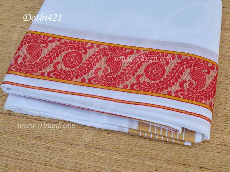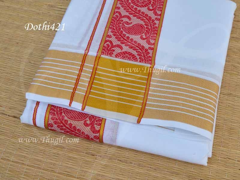 Good quality dhotis with border. Used during Puja and special occasions. Traditional Indian costume.
