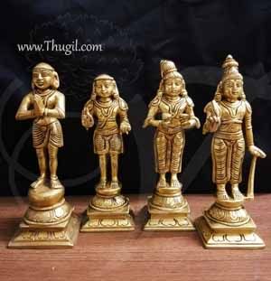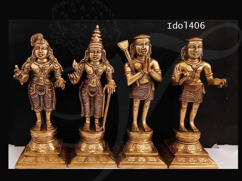 Brass idols of Nalvar – Appar, Sundarar, Manikay Vasagar and Sambandar Product : Appar, Sundarar, Manika vasagar and Sambandar idols Height  : 6″ / 15.2 cm each Type   : Brass