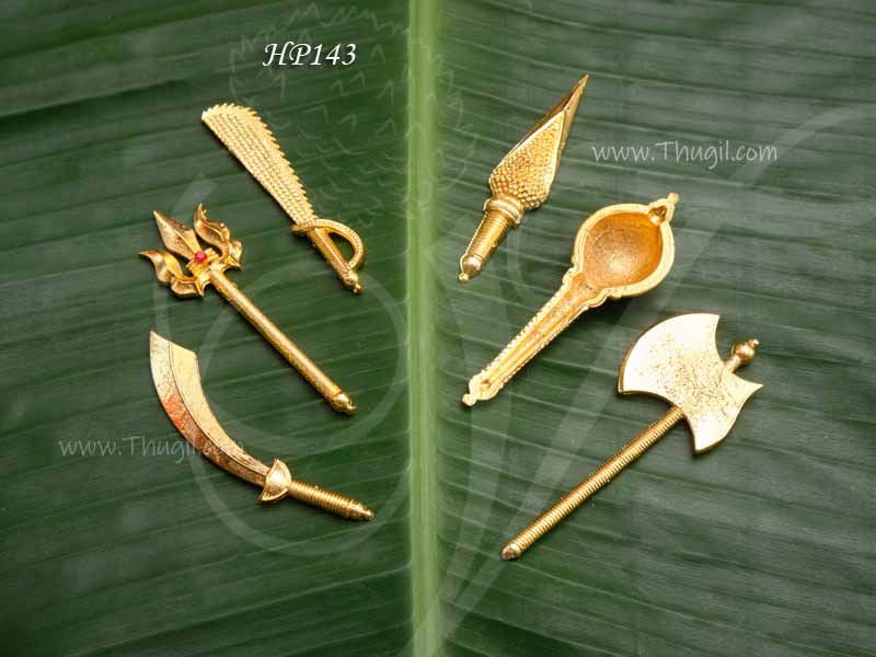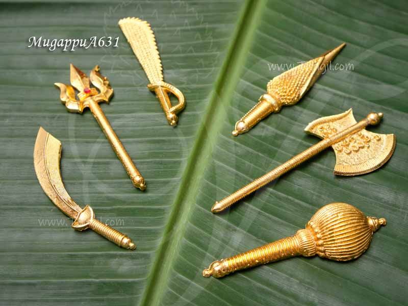 Six Gold polish weapons for all Hindu Gods alangaram. Used to decorate the statue of Deity.