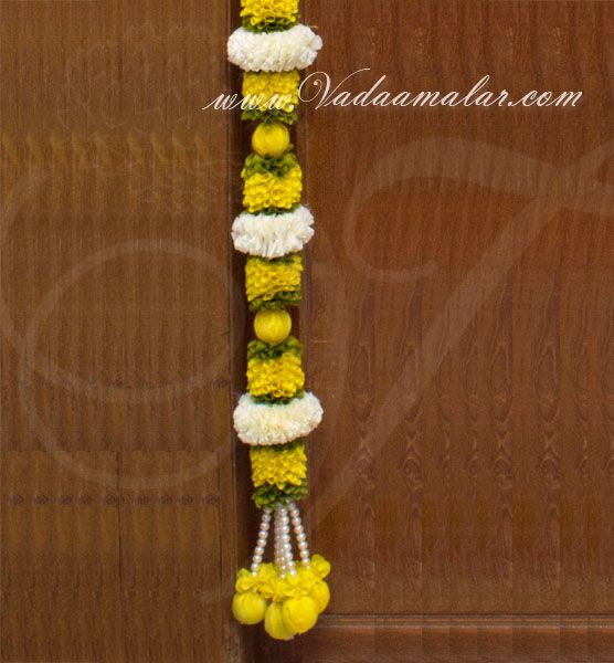 Multi color artificial flower door decoration synthetic fabrics arranged in Cream and Green to look like a beautiful strand of flower.