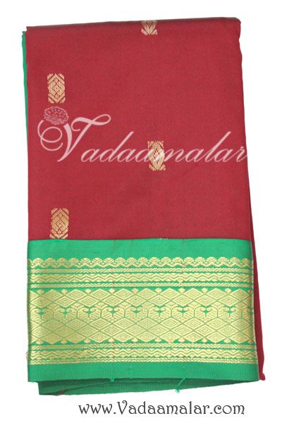 MaroonColor with gold zari border saree. Hindu deity costume wrap saree