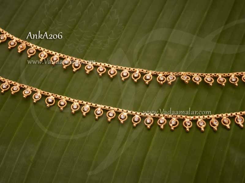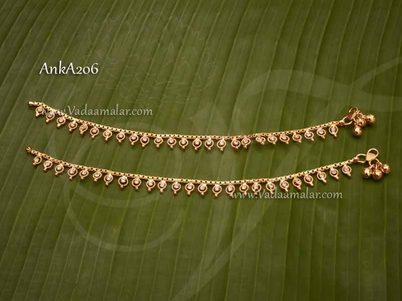 Anklets For Amman Goddess Kolusu Gold plated White Stone 6 inches