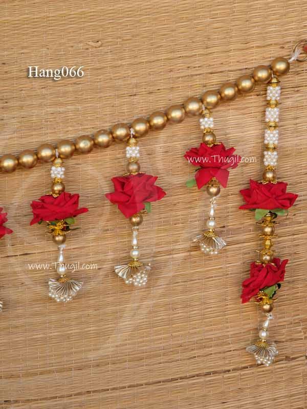 Artificial rose flower with Pearl and Gold Beads toran door hanging home decoration 40 inches