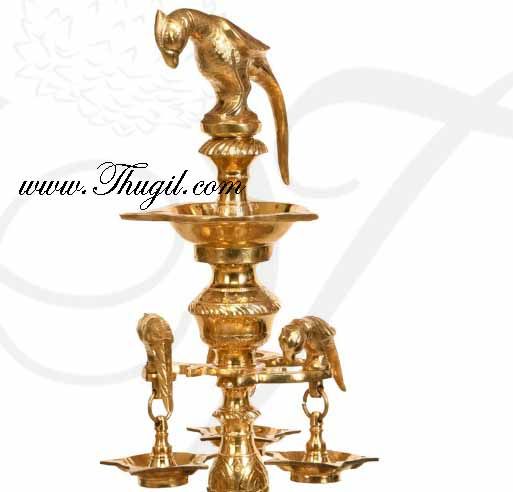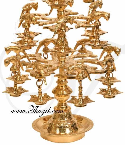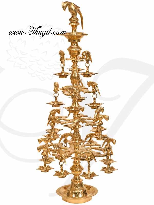 This stunning Ashtothira deepam diya has 108 lamps. Pure brass lamps with parrot figures on each of the diyas. Ashtothira deepam has 4 steps and looks beautiful when displayed.