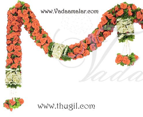 Beautiful rose flowers toran. Door and window decoration garlands for home, temple, mandap and ceremonial halls. This traditional tapestry thoran adds elegance your room on any occasion. These beautiful traditional designs are hand made with special quality synthetic fabrics.