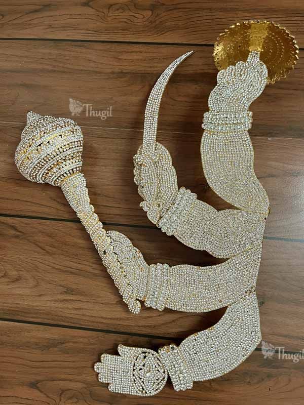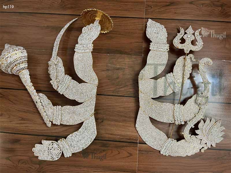 Big Devi Alankaram Hand with Lotus Hastham Goddesses Durga Temple Ornaments White stones Large