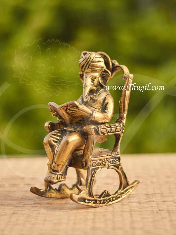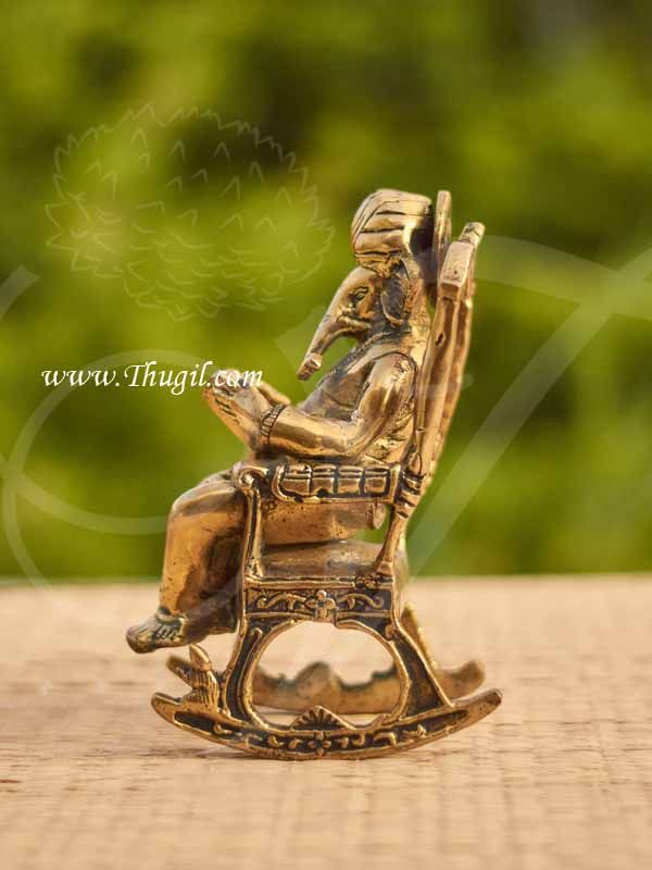 Brass Ganesha Sitting On Rocking Chair Statue 6.5″