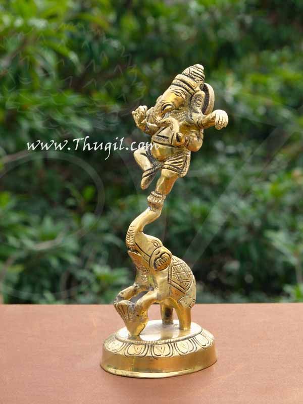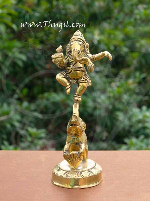 Brass Nritya Ganapati Ganesha Standing on Elephant Statue Buy Now 6.5″