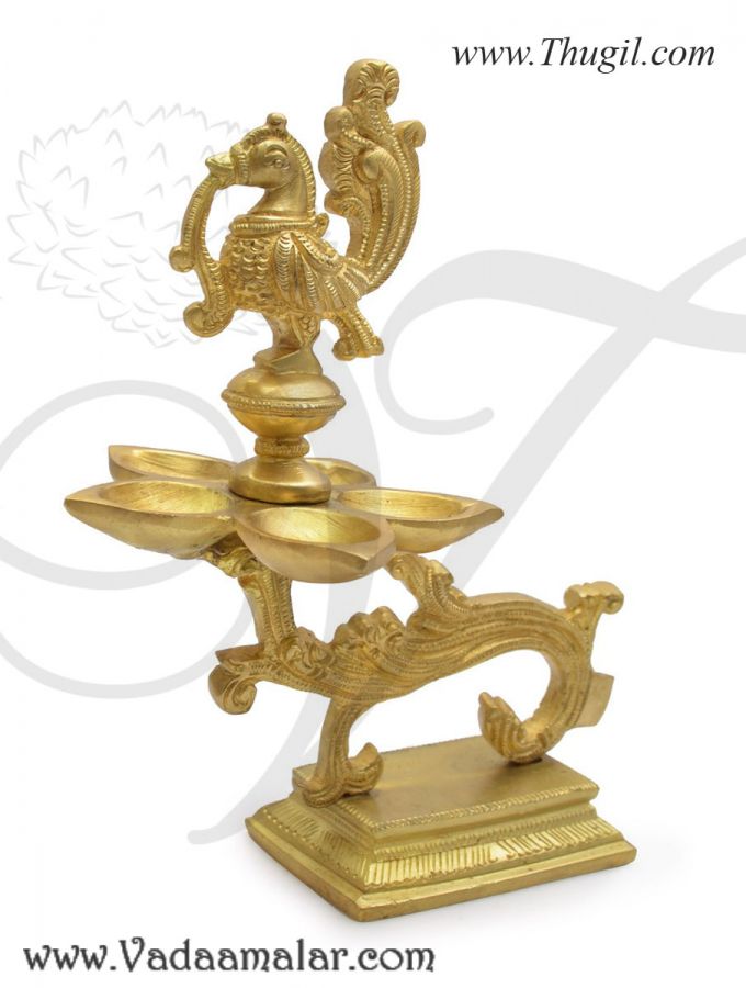 Brass Peacock Oil Lamp Diya Vilakku 8 Inches