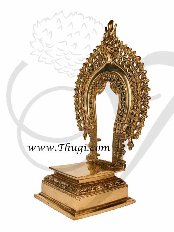 This decorative brass arch popularly known as “THIRUVACHI” or “PRABHAVALI” is used to keep at the back of moolavar in all our Hindu Temple’s.it can also be used as a wall accent or wall hanging. Prabhavali or the decorative arch placed around the icons of the of deities at temples and home shrines. It typically consists of an arch with in tribal head center, resting on a pair of poles with decorative pillar on either sides.