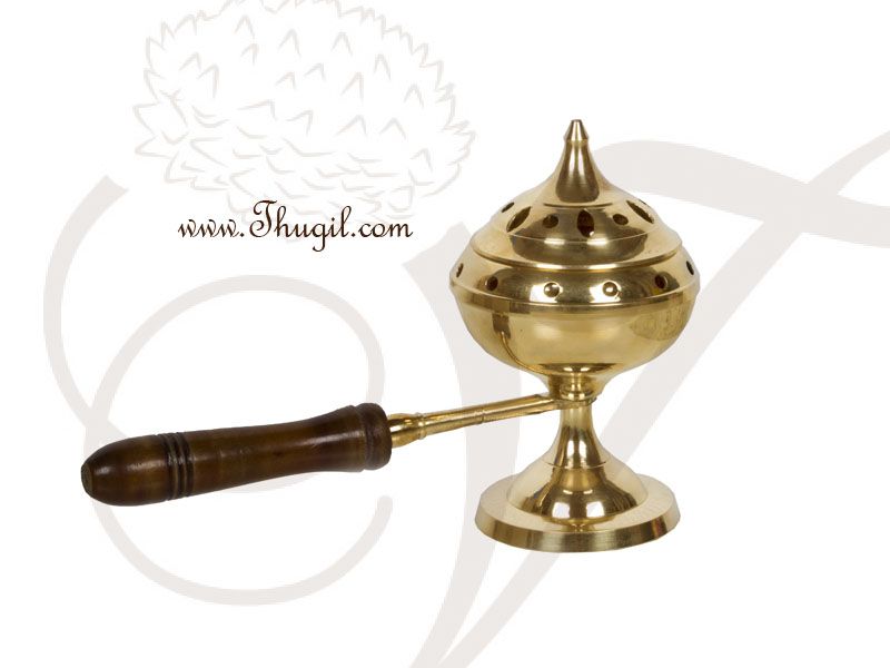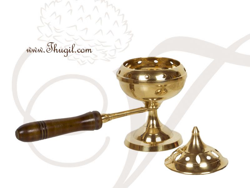 Traditional Sambrani Doop holder. Quality brass with wooden handle. Used in Pooja and temples.