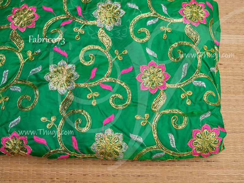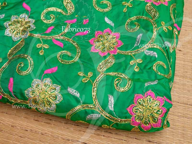 Brocade Material Green Floral Design Heavy Embroidered Fabric
