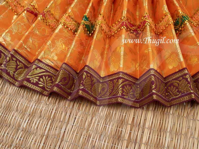 Beautiful orange skirt used for statues at temples as a clothing or wear. can be easily worn by tying the strings around the waist of the Goddess statues. the pallu part is also given to cover the top part of the idol.