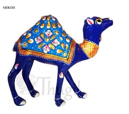 Beautiful hand painted show piece of Camel.Lacquered with colorful Meenakari work with rich use of blue enamel and hand painted golden. It can be gifted for any festival occasion and can also be used to decorate the house. An ideal traditional gift aesthetically created.