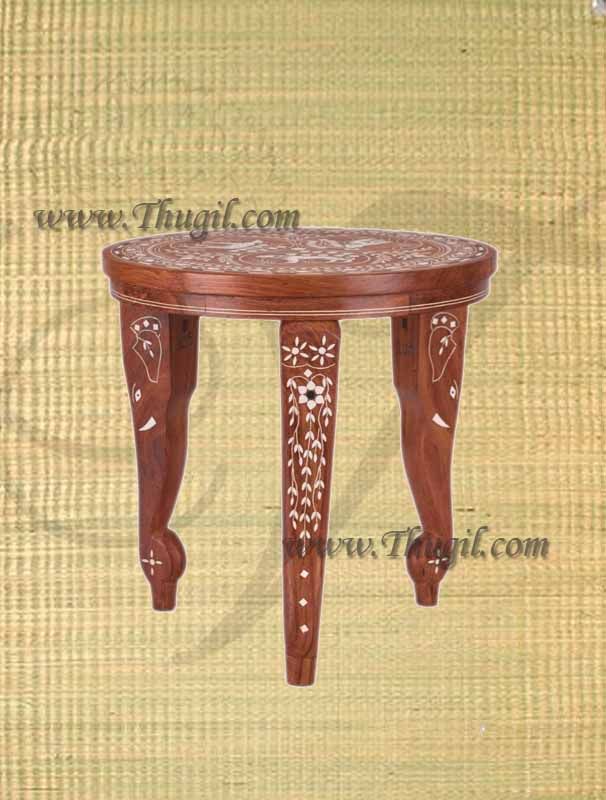 Coffee Table Sheesham Wooden Elephant Inlay Work Round 12 inches