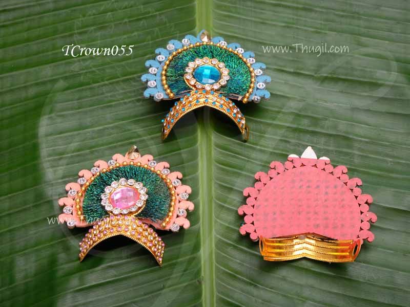 Fan design mukut decorated with stone and beads. Used for Krishna / Vinaygar / Murugn or any small statue of deity.