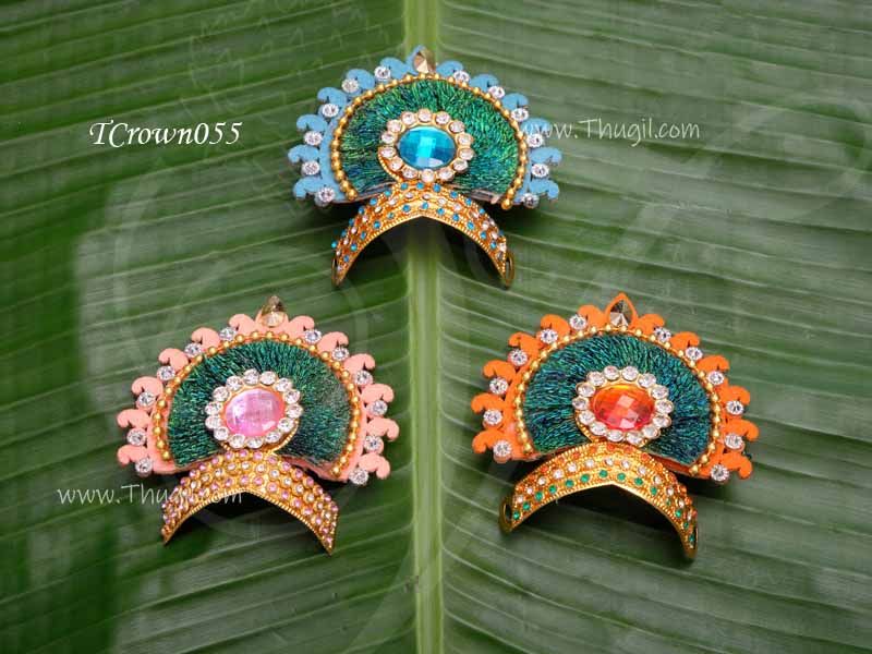 Crown Ladoo Gopal Ji Mukut Krishna Kreedam 3 pieces x 2.5 inches