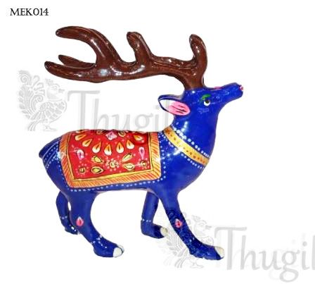 Beautiful hand painted show piece of deer.Lacquered with colorful Meenakari work with rich use of blue enamel and hand painted golden. It can be gifted for any festival occasion and can also be used to decorate the house. An ideal traditional gift aesthetically created.