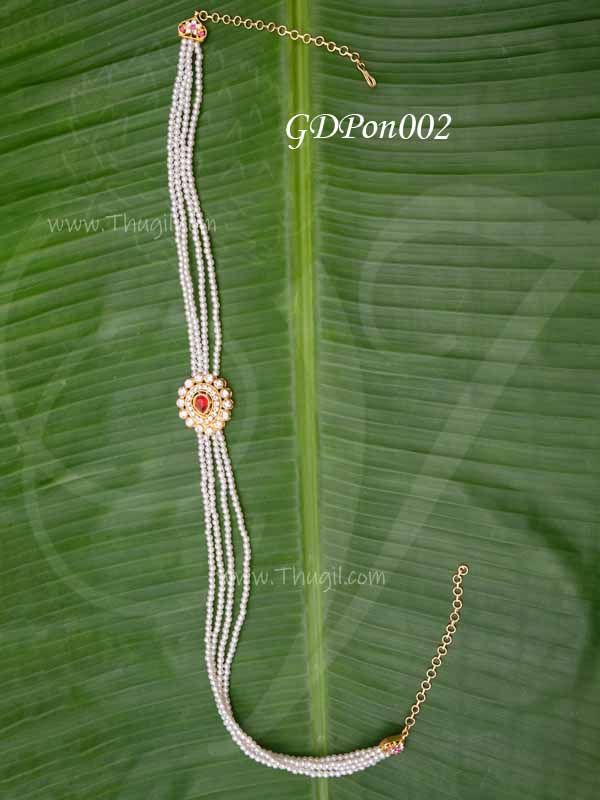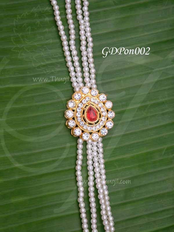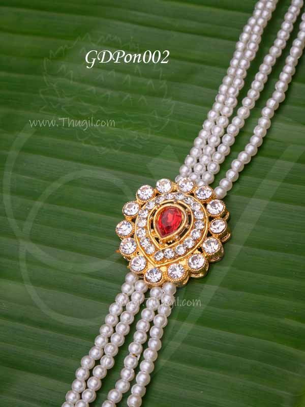 Poonal or Janeu or Yagnopaveeth or Deity sacred thread is worn for religious importance in Hinduism. The pearl strands represents the sacred thread for the Deity. Pearl Janeu are totally handmade.