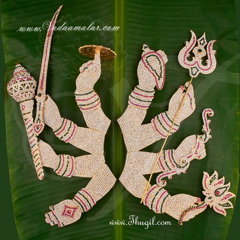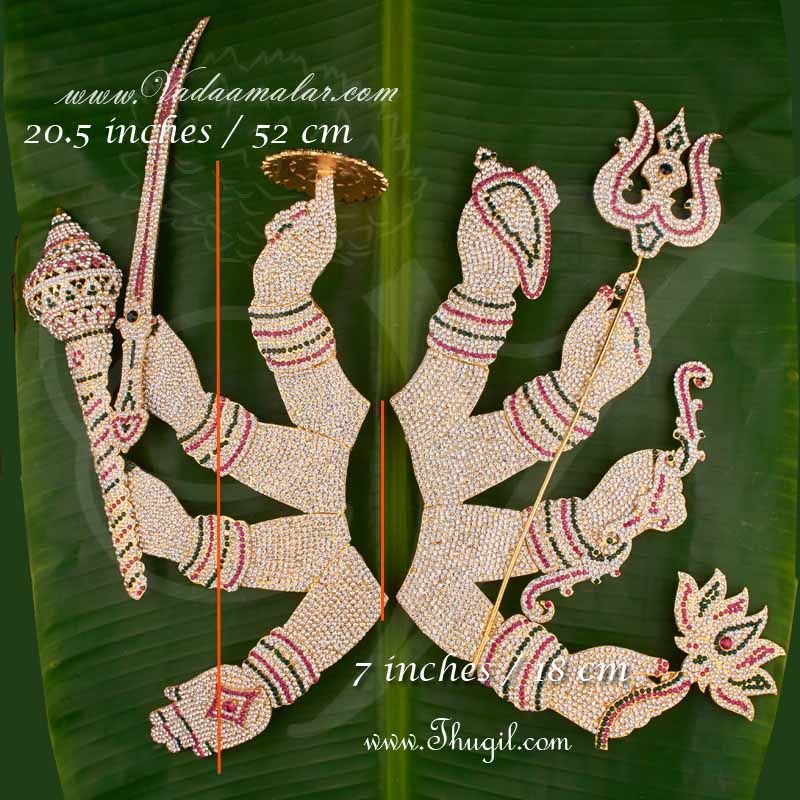 8 hands for Devi Durga. Dazzling quality stones. Ornaments for Deity Durga / Swami Alankaram. Hastham or Palm jewellery for all Gods and Goddesses