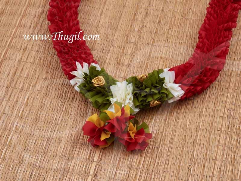 Beautiful handmade malaa available. Eco friendly and reusable garlands. Maalai for God and Goddess. This garland made up of synthetic ribbon folded to look like beautiful flowers .