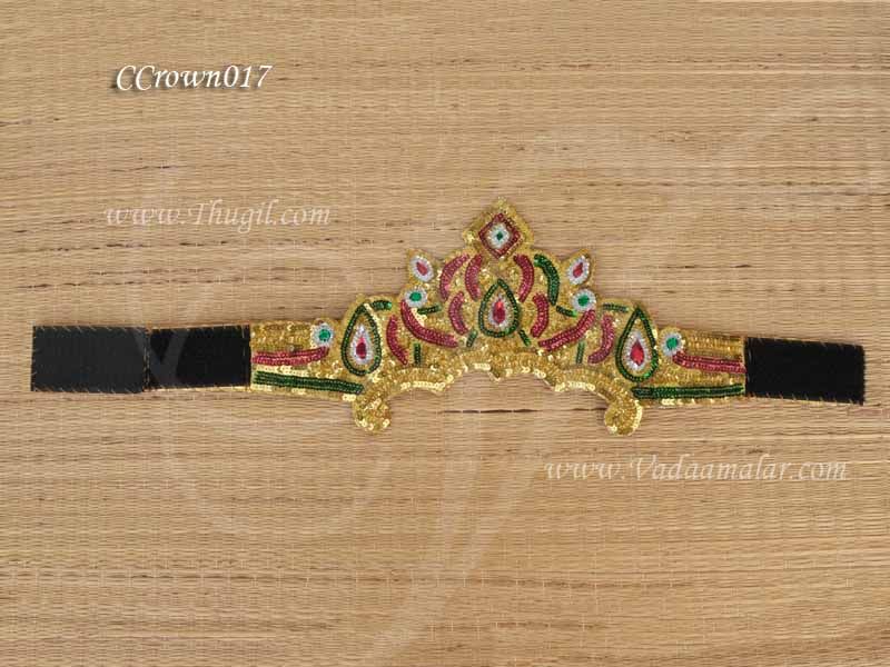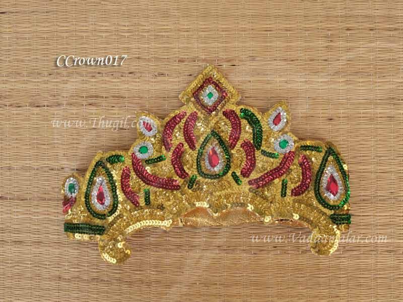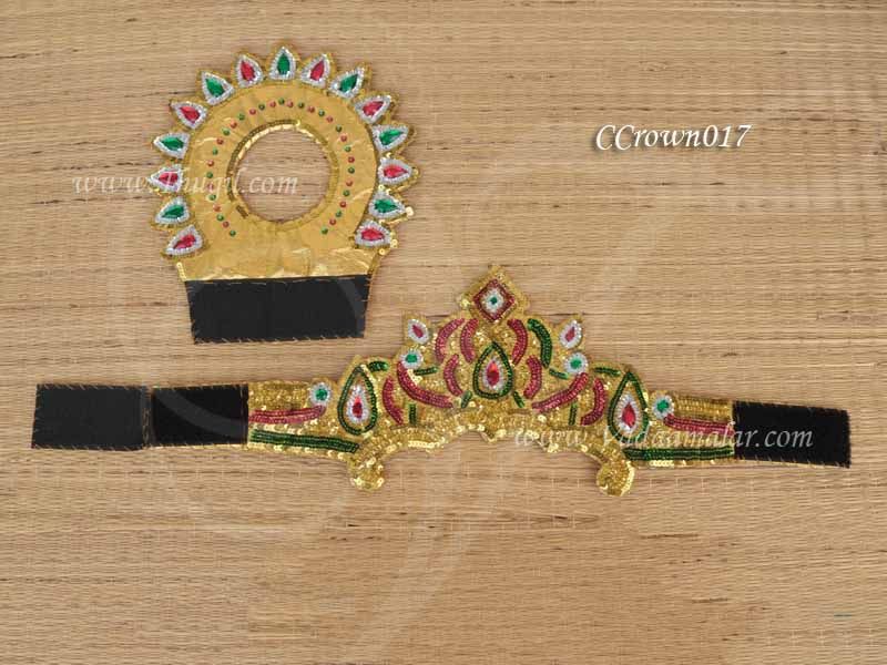 Golden crown used for Fancy decoration of Indian Gods. Made of paper and decorated with sequence and beads. Ideal for Gods.
