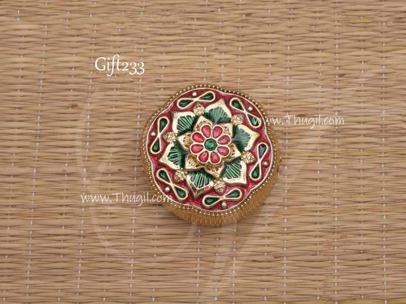 Flower Design Enamel Stone Kumkum Holder Box 1.5 Inches