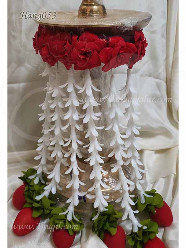 Beautiful hangings for Diya with rose decorations. Strands of tube rose with synthetic rose flower / Roja at the end.