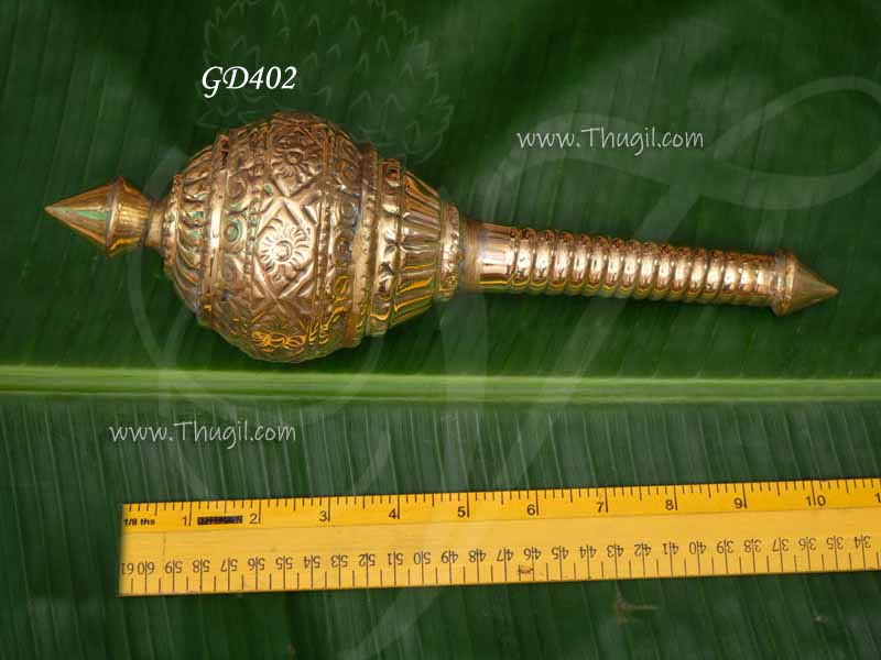 Anjaneyar Kadhai in brass, which is the main weapon of the Hindu god Hanuman.Gandham accessory for Lord Hanuman decorations.