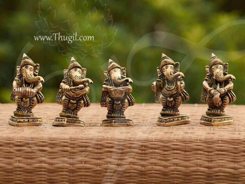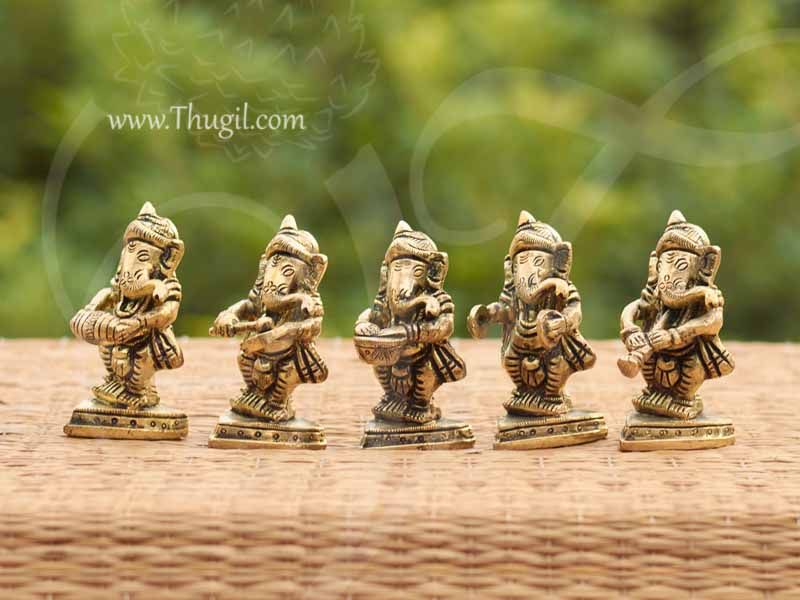 Ganesha Ganesh Musician Set Brass Hand Crafted Set of Five Buy Online 3″