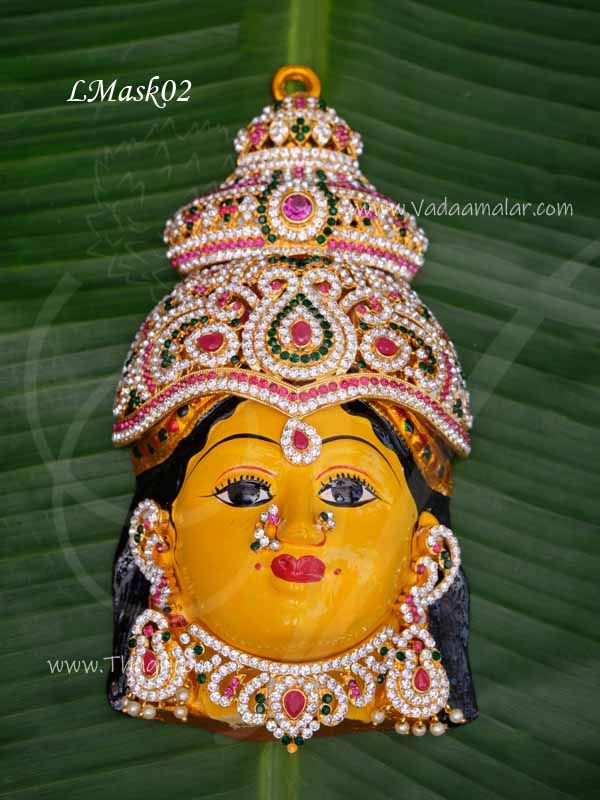 Beautiful stone studded Goddess Lakshmi face. Beautifully decorated face mask used for pooja during Varamahalakshmi and Vratha Pooja.