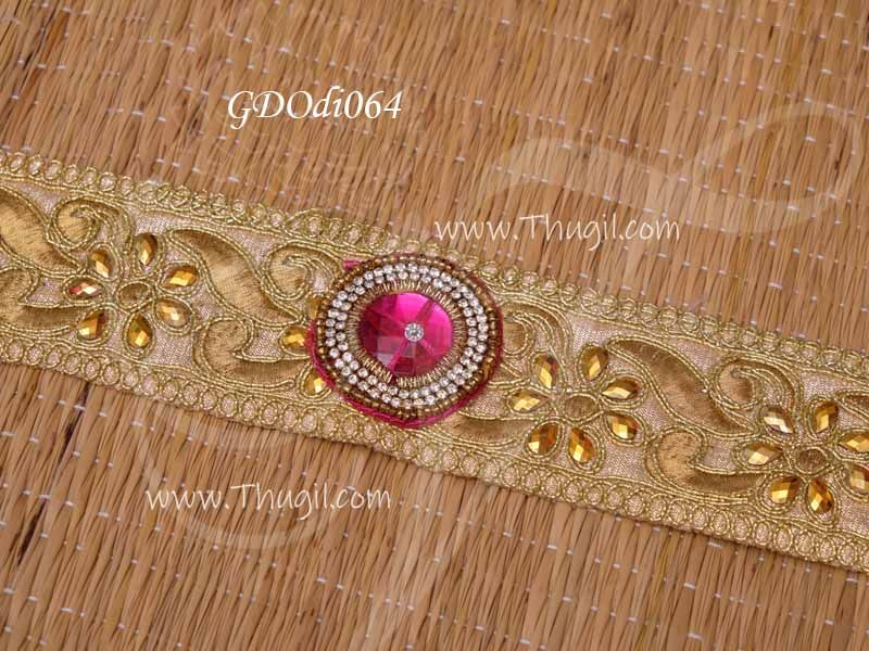 Small odiyanam gold colour lace with stone. Center point of pink stone for the waist belt. Stunning hip jewellery called Vaddanam Oddiyanam for Hindu God Decorations.