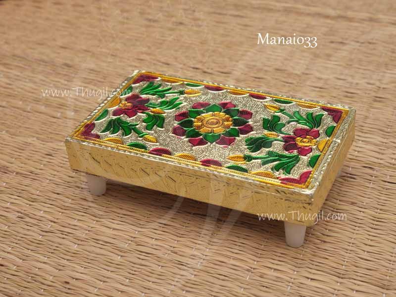This awesome golden foil Flower Design meenakari manapalagai / pooja chowki gives an appealing look and a great designer gift with traditional work during special Religious & festival occasions such as Wedding anniversary, House Warming ceremonies, Birthday, New venture, Diwali and Dasara / Navrathri.