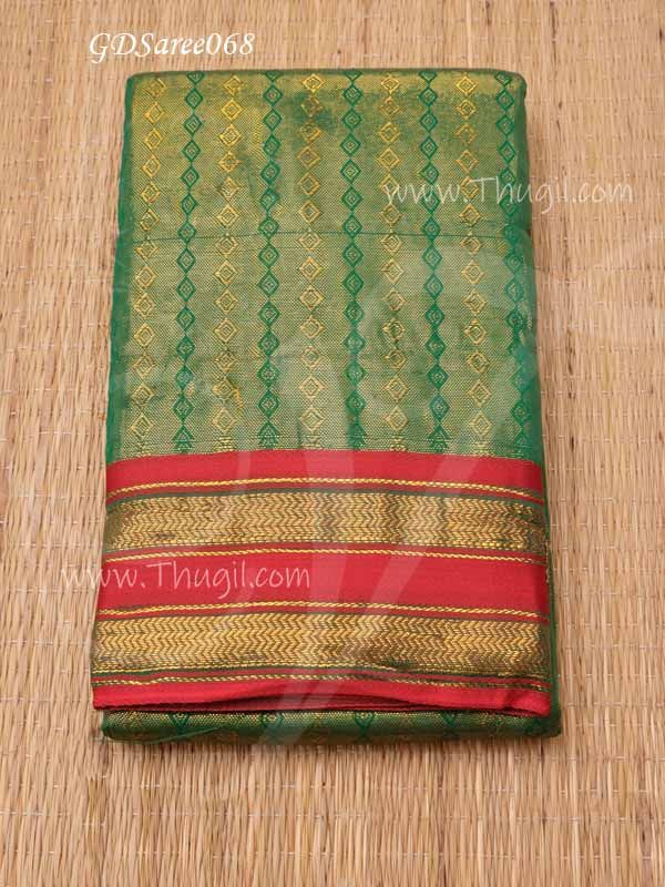 Green Saree For Amman Devi Durga Sari Zari Border Deity Dress 4 Meter