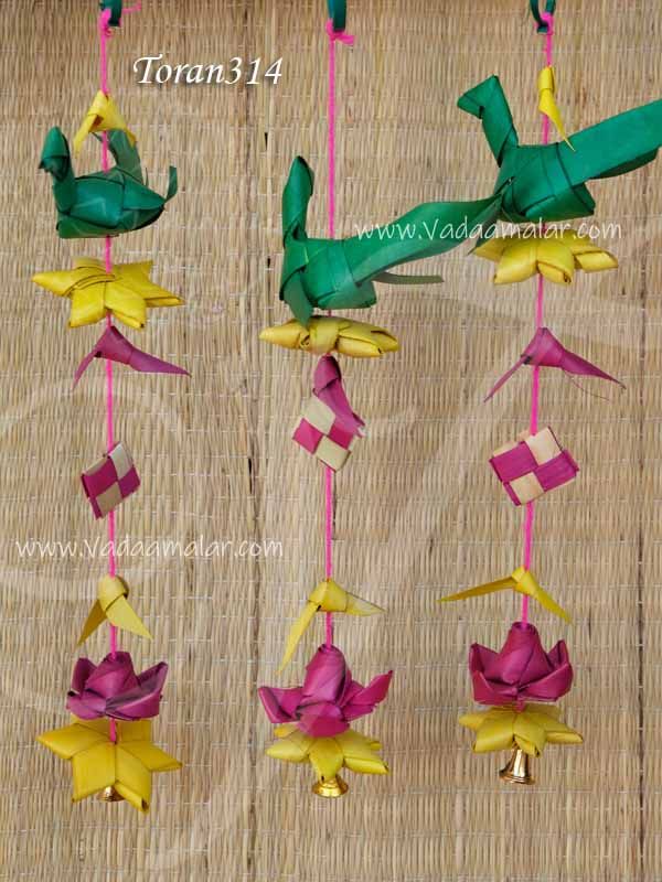 Palm leaf hangings with Lotus and parrot decorations. Strands of Indian style hanging with Parrot and lotus flower.