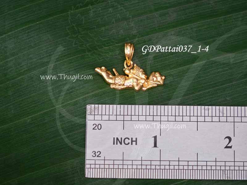 A small micro gold-plated pendant featuring Lord Hanuman. Good quality dollar of Anjaneyar.
