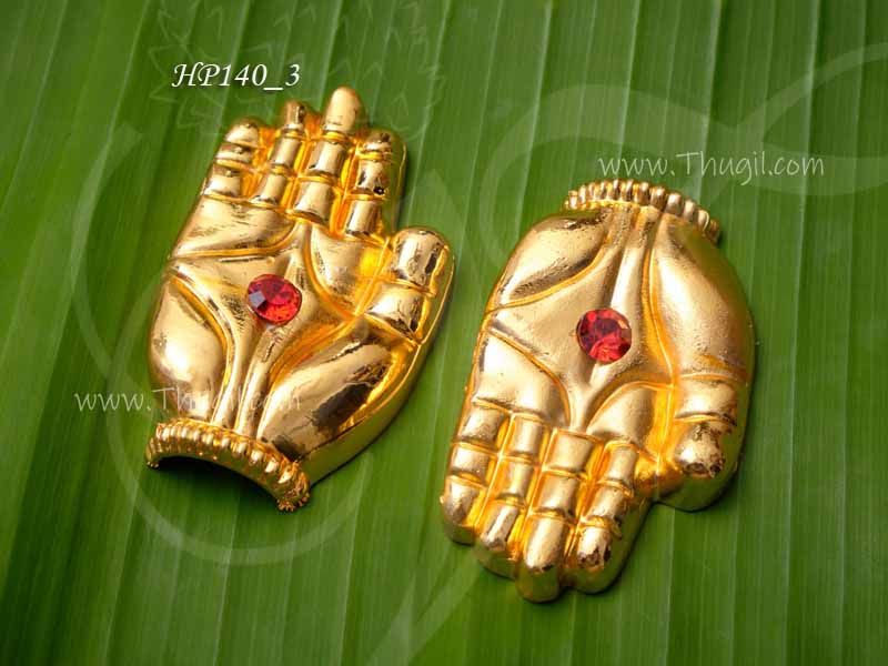 Mini Hastham with Quality gold polish with one Small center stones. Ornaments for Deity / Swami Alankaram. Hasthalu sets for all Indian Gods and Goddesses.