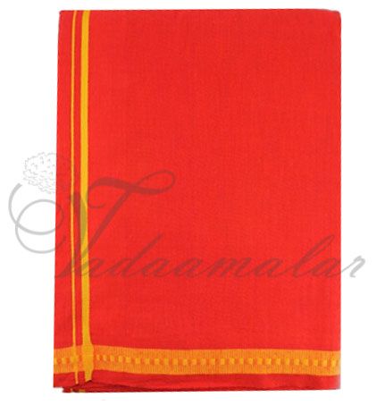 Description : Good quality dhotis with colour borders. Used during Puja and special occasions. Also used for the Gods. Traditional Indian costume.