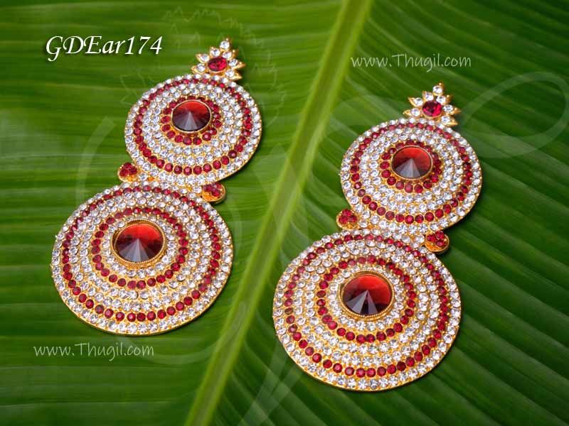 Ear jewellery / Karna Patham in red stones set. Designed to used in decorate the statue of God and Goddess.