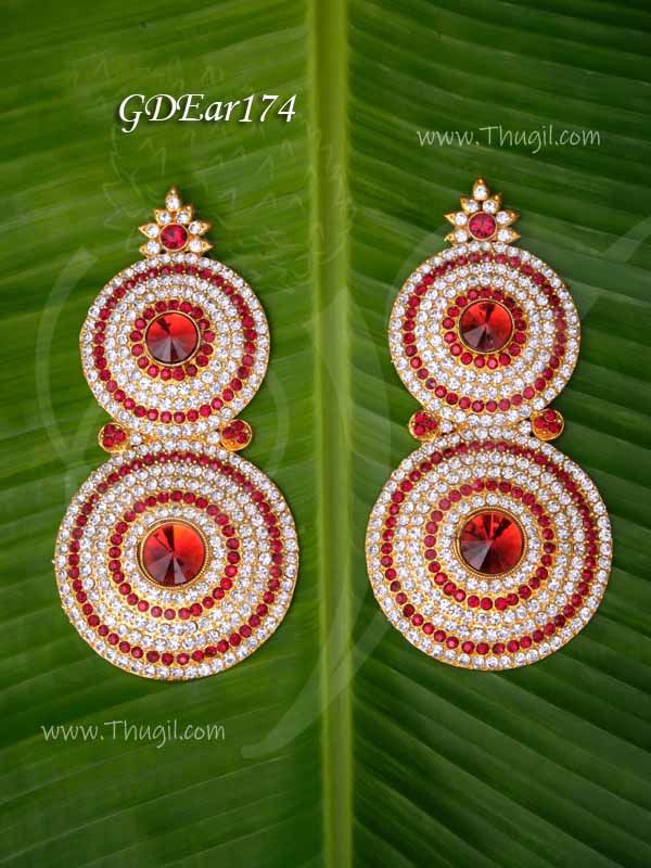 Ear jewellery / Karna Patham in red stones set. Designed to used in decorate the statue of God and Goddess.
